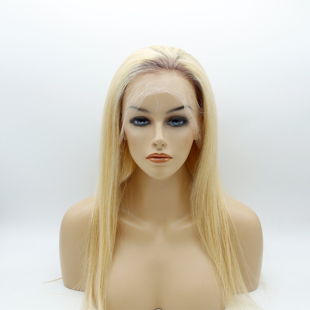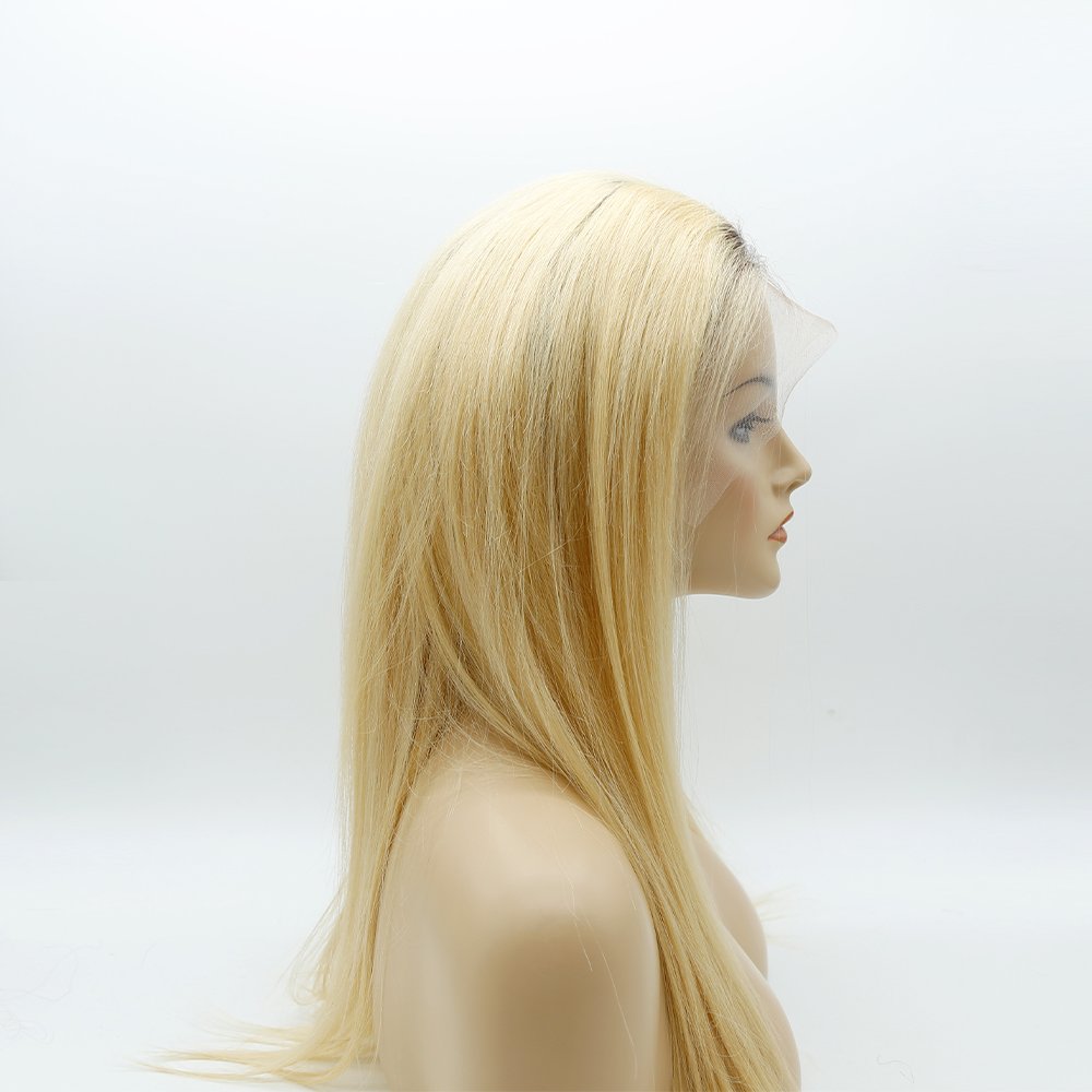 This wig is our custom made lace wig. The front lace is so breathable and natural. The back has stretch mesh and elastic to fit a variety of head sizes. The clips on the sides also allow for better fastening.We could make the root color,which follow customers’requirement.