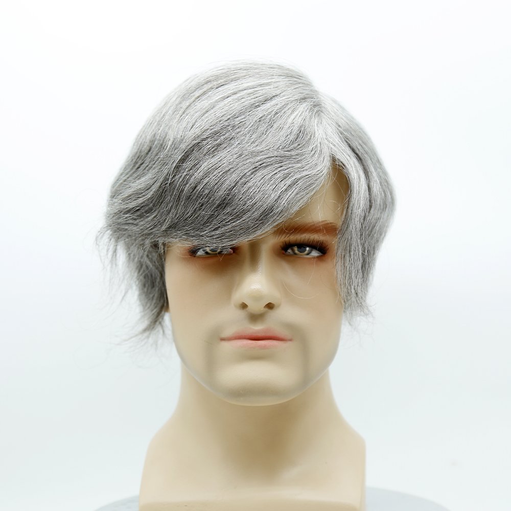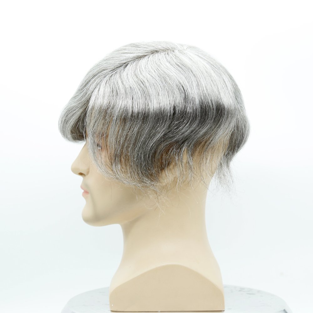 This is our custom made lace toupee.The French lace is so soft and breathable.Customers prefer to wear it in summer.The hair type is all human hair ,including the grey hair.The human grey hair is so natural. The lace toupee life span is around 4-6 months.