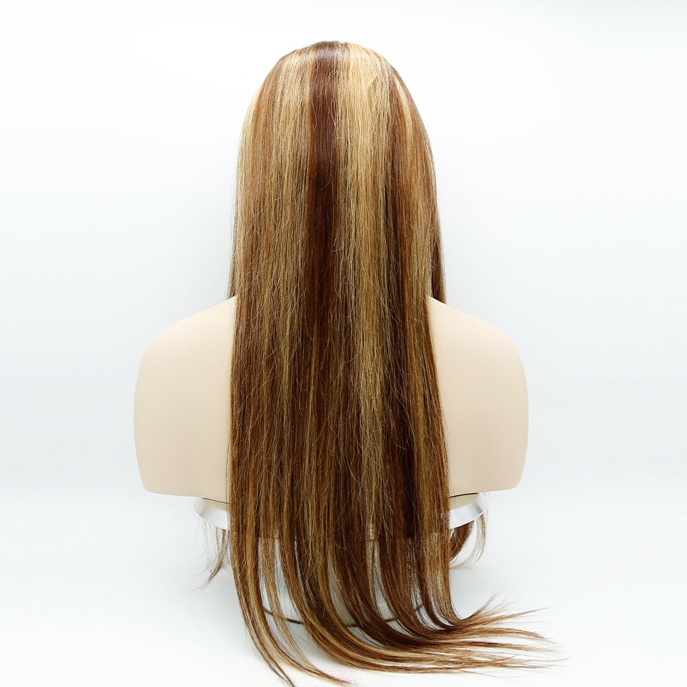The wig is Eminent Hair lace front wig for women. The wig cap design is 13”*4” lace front with weft on the back. The front lace can create a natural hairline. The hair length is 22 and highlight color 4/27. There is also machine weft on the back, so the wig is breathable. There are also various hair length and colors in stock that can be shipped immediately.