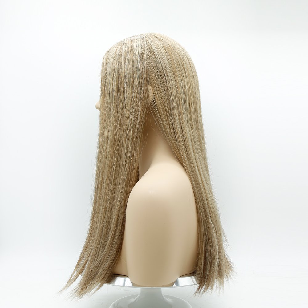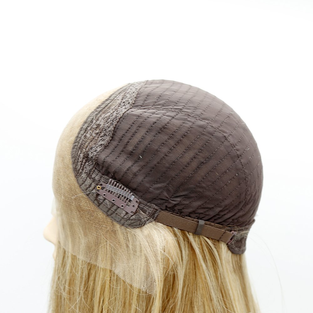 The wig is Eminent Hair custom wig for women. The wig cap design is lace front with weft on the back. The front lace can create a natural looking. There is machine weft on the back, so the wig is very breathable. Any base size and hair color can be made accordingly.