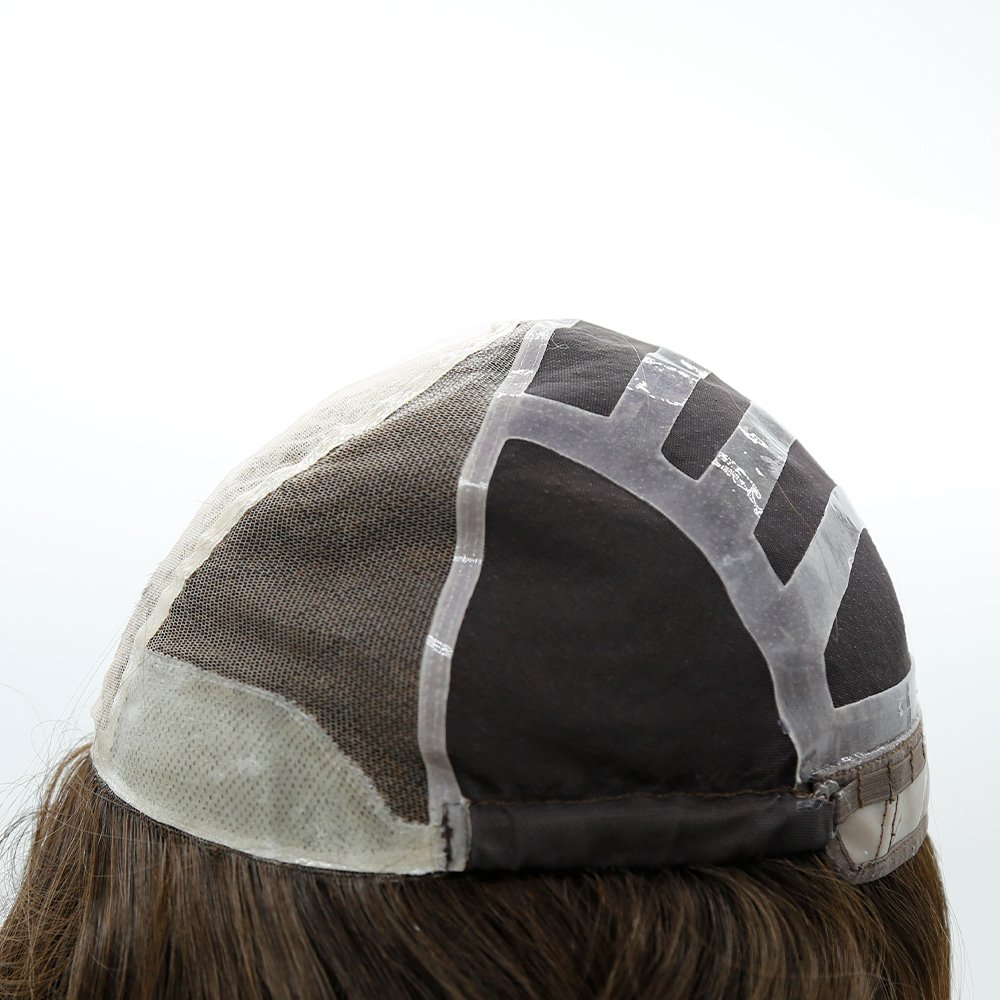 This wig is a large-area lace material used by the customer. Its advantage is that it has excellent breathability and can effectively dissipate heat and sweat from the scalp. It will not be stuffy when worn for a long time (such as commuting all day), improving the wearing comfort. The front is pu coated material, easier to use tape. I have silicon pu on the back, which can be fixed on the scalp without using glue.